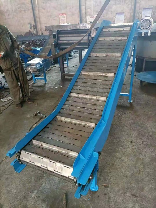 (6)平顶链板输送机,采用平顶链板输送带做成,国标件,现货。非常简单容易操作。多年来锻造行业的常见身影。