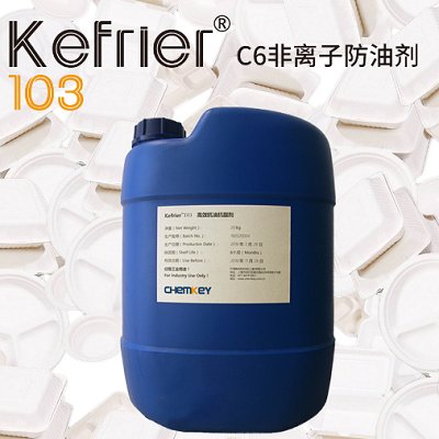 K- 103是一种高效非离子型含氟防油防脂剂,能赋予产品良好的抗油抗脂性能。K- 103为“C6”型产品,不含有PFOA与PFOS ,C6类氟碳防油剂为FDA认可类型产品,K-103可适应于各种复配体系,特别适合应用于造纸、纸加工的涂布、施胶工艺,可以消除与载体、涂料其他组份的各种相容性问题。
