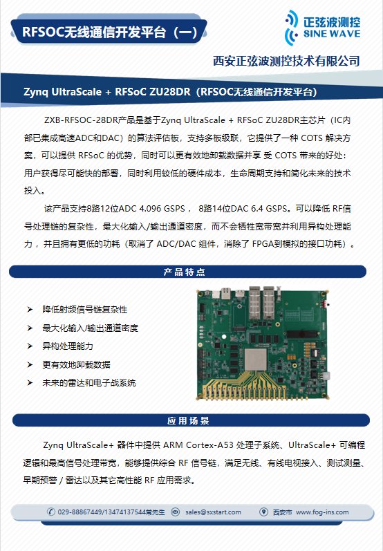 ZXB-RFSOC-28DR产品是基于Zynq UltraScale + RFSoC ZU28DR主芯片(IC内部已集成高速ADC和DAC)的算法评估板,支持多板级联,它提供了一种 COTS 解决方案,可以提供 RFSoC 的优势,同时可以更有效地卸载数据并享 受 COTS 带来的好处:用户获得尽可能快的部署,同时利用较低的硬件成本,生命周期支持和简化未来的技术投入。