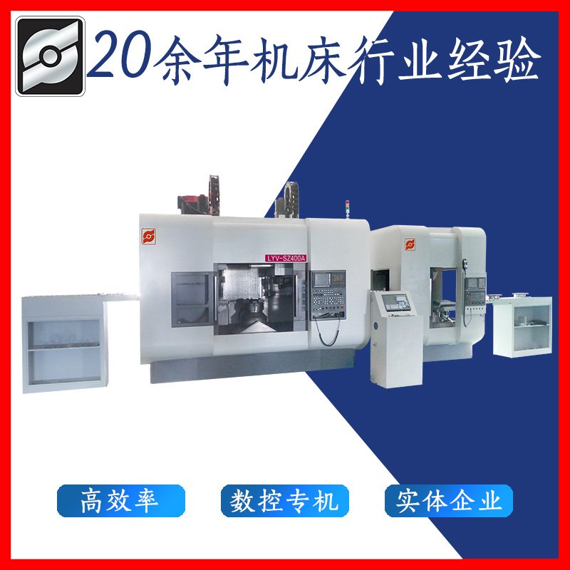 刹车盘车床双主轴之间对接传递工件,可解决二次装夹所带来的精度误差,提高加工的稳定性,简化工件传送机构结构,易于工件上下料自动传送,实现各种盘类件大批量生产,即可实现粗精一体加工,又可以进行精加工自动生产。