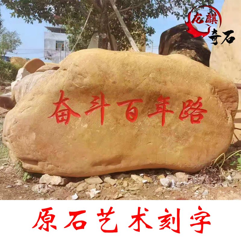 村牌石文字石黄蜡石原石风景石自然石大石头英德石大型景观石刻字