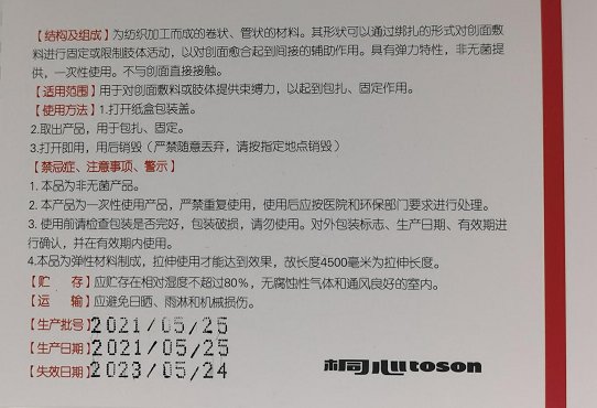 为纺织加工而成的卷状,管状材料。其形状可以通过绑扎的形式对创面敷料进行固定或限制肢体活动,以对创面愈合起到简介的辅助作用,具有弹性特性,非无菌提供,一次性使用,不与创面直接接触。