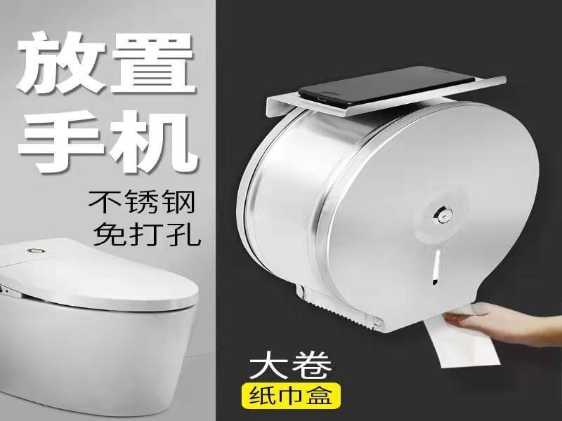 明装挂墙式壁挂多功能擦手纸巾盒 304不锈钢抽纸箱 带垃圾桶连体垃 圾桶掩饰盖