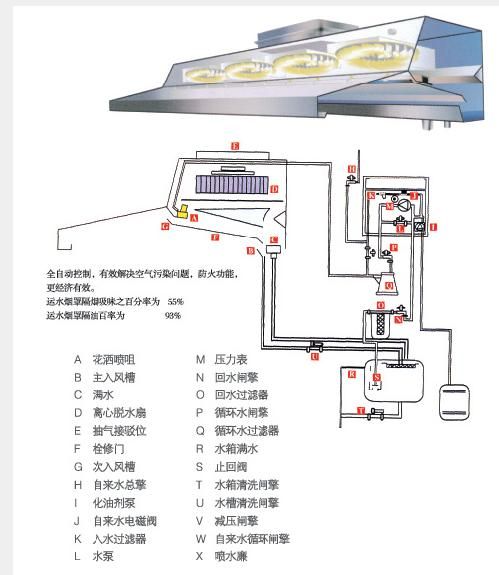 不锈钢制造,外型美观耐用,并因油污不易积聚,故方便清理及长期保持清洁卫生。能降低炉具范围温度为厨师提供更佳的工作环境。如水源突然中断,烟罩仍能如常继续运作,帮助保持厂房继续运作。