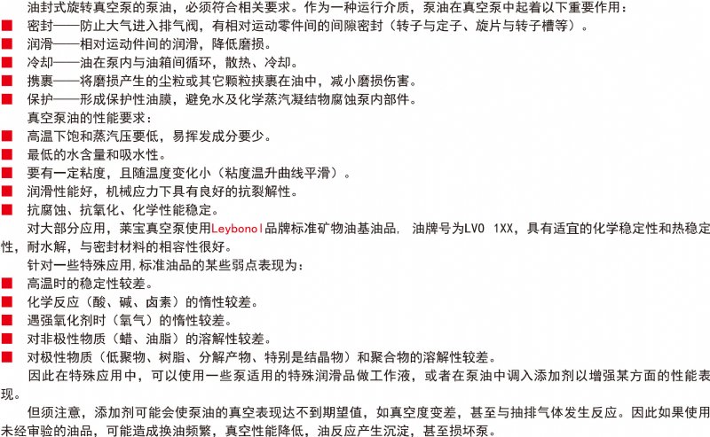 德国莱宝泵油LVO300 LVO310使用要求及注意事项:
