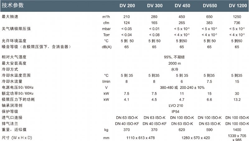 DV1200德国莱宝干式真空泵技术参数介绍: