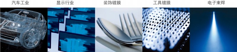 应用于汽车工业,显示行业,装饰镀膜,工具镀膜,电子束焊接等。
