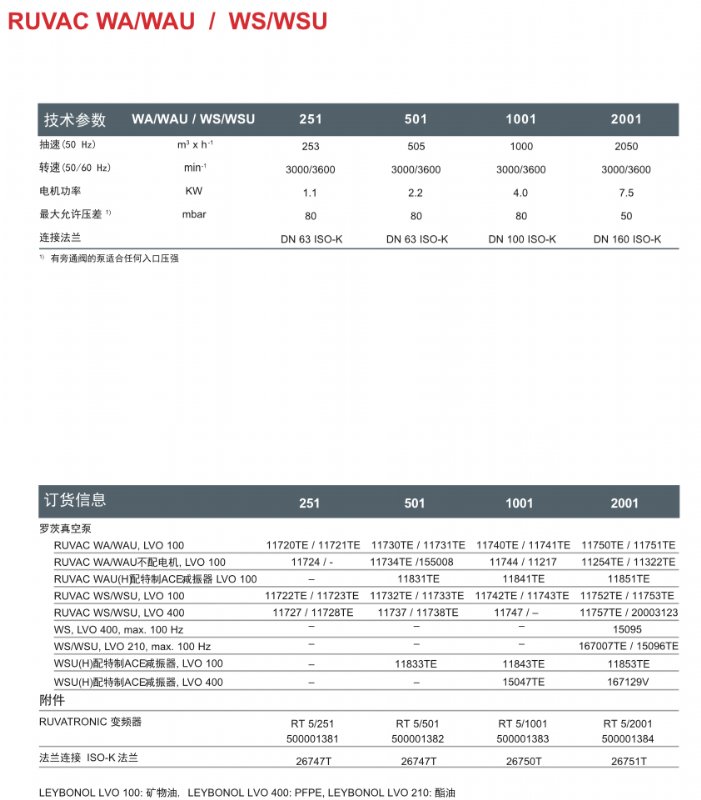 WH(U)2500德国莱宝罗茨真空泵技术参数如下: