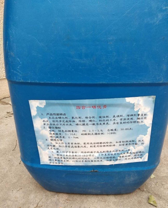 三:维护管理: 进入发黑液每10分钟,可将工件上下抖动数次,使工件表面充分接触发黑液,发黑时间10分钟,掌握好发黑时间是得到优质发黑膜的关键,不同的材质,不同的工作液浓度发黑时间不一样,判断的依据:视工件表面有一层均匀黑色膜即可,表面干2-4小时,实干24小时,才能达到效果,可充分利用表面的残液,减少发黑液的消耗,降低成本,发黑以后用清水冲洗三遍即可。 四:每桶净重25公斤,可以1:1或2倍稀释,每公斤可以发黑面积20-30平方左右.