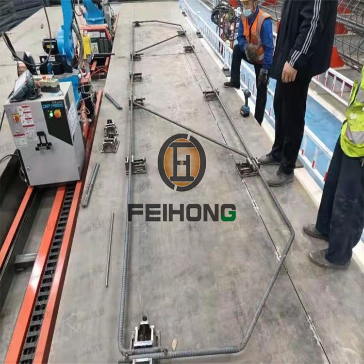 钢筋摆放到焊接平台上,由焊接夹具固定好钢筋连接处(夹