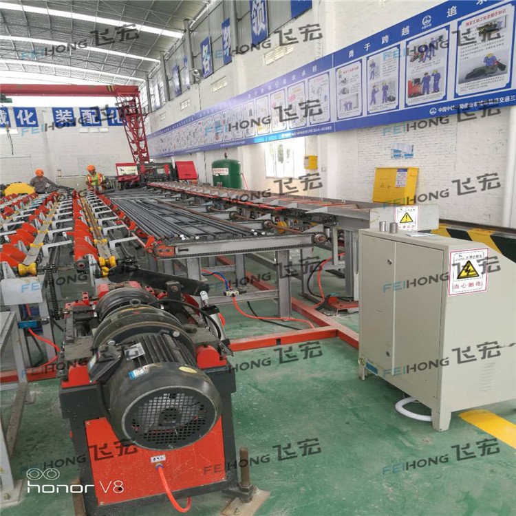 FHST-40SAC型数控钢筋锯切套丝打磨生产线主要由备料架、锯前输送轨道、锯切主机、锯后输送卸料轨道、送料平台、一号套丝辊道、一号