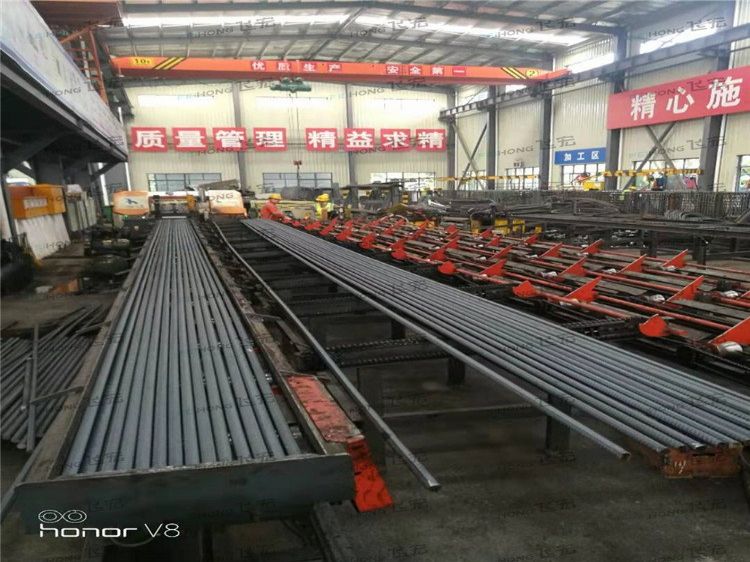 上料机配合使用,实现上一个循环尚未结束时,即可进行下一步配料,以节省循环周期;全自动送料辊道,避免原料的二次搬运;钢筋的输送、翻转、传递等全部由机械完成,大幅度提高了效率;钢筋输送滚采用 V 型耐磨辊进行,达到了耐磨、减噪音、寿命长等特点;缩径、滚丝主机头实现了自动夹紧、送进、缩径、滚丝等功效。