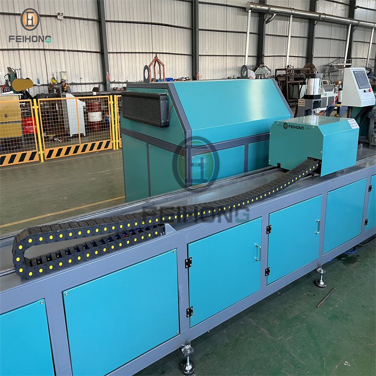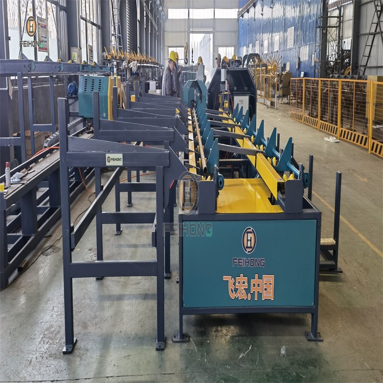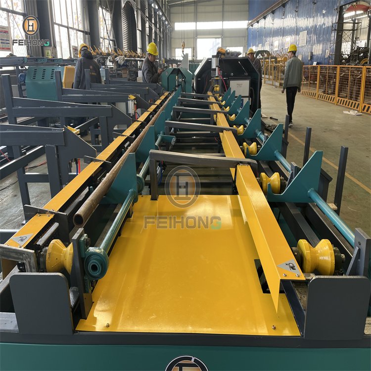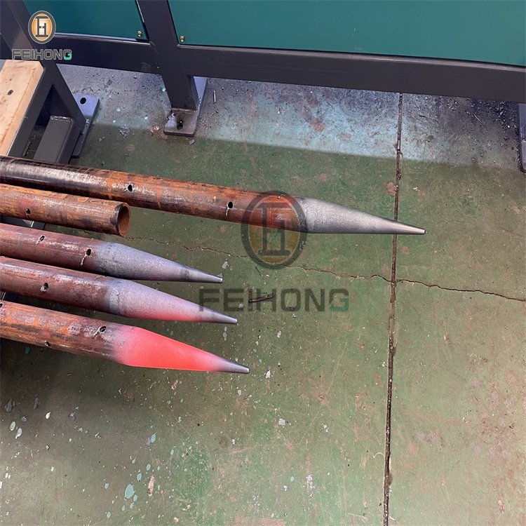 钢管打孔和缩尖工序在一体的生产线,操控台控制整个加工流程,从钢管原料到后面钢管表面打孔和前端缩尖加工完成的成品,生产线可以加工多种长度规格、注浆孔布局规格的钢管,具有生产效率高、操控自动化程度高的优点。