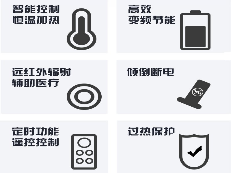 8、产品特点:·7cm超薄机身;·空气对流加热;·10秒速热;·倾倒保护;·过热保护;·温度可控;·发热时间可控;·支持睡眠模式;·远红外功能;·无风无光无噪音;·加热不干燥。
