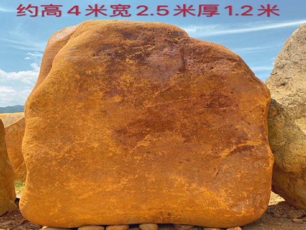 黄蜡石若作为标识石置石的话,它的本质在于它的功用性。虽然具有观赏价值,但标识石主要不是为了供人观赏,而是为了实用,具有不可替代的独特功能。经过设计的标识石都应具有某种程度的艺术性,既符合实用要求,又符合美学原则。一般来说,艺术性强的标识石更能吸引和感染人,给人以强烈和深刻的印象。景观黄蜡石轻薄但不小巧,长高都有一定分量,完全满足做