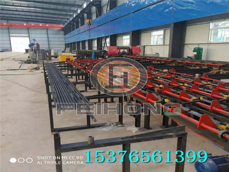 FHST-40SAC型数控钢筋锯切套丝打磨生产线主要由备料架、锯前输送轨道、锯切主机、锯后输送卸料轨道、送料平台、一号套丝辊道、一号