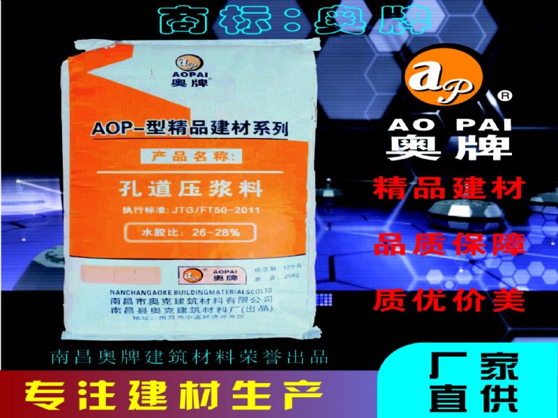 奥牌建材厂家是《公路工程预应力孔道压浆料(剂)标准》(JT/T 946-2014)参编单位,生产的材料流动性好,稳定性强,主辅材料相融性好!