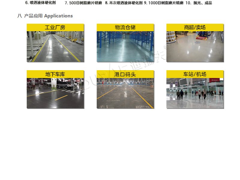 2.加强型液体硬化剂:普通混凝土原浆收光地面与旧地面翻新。
