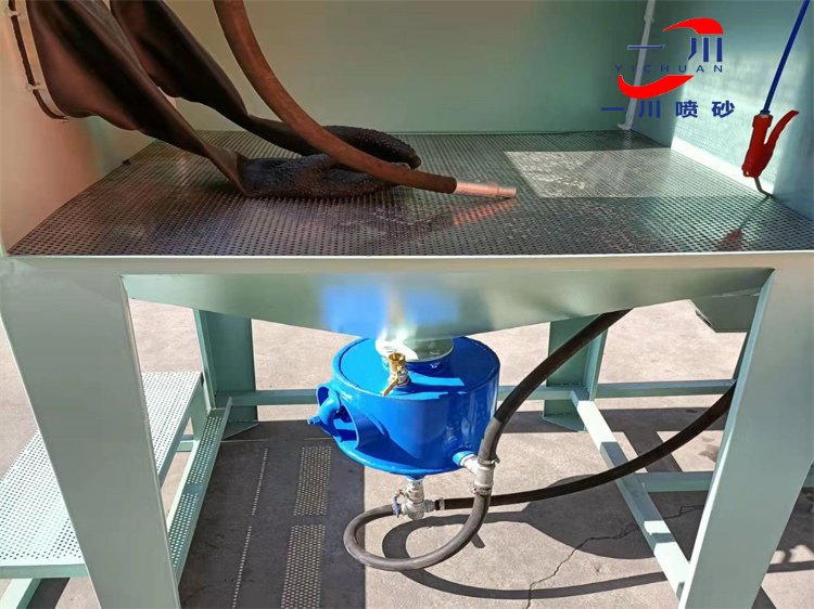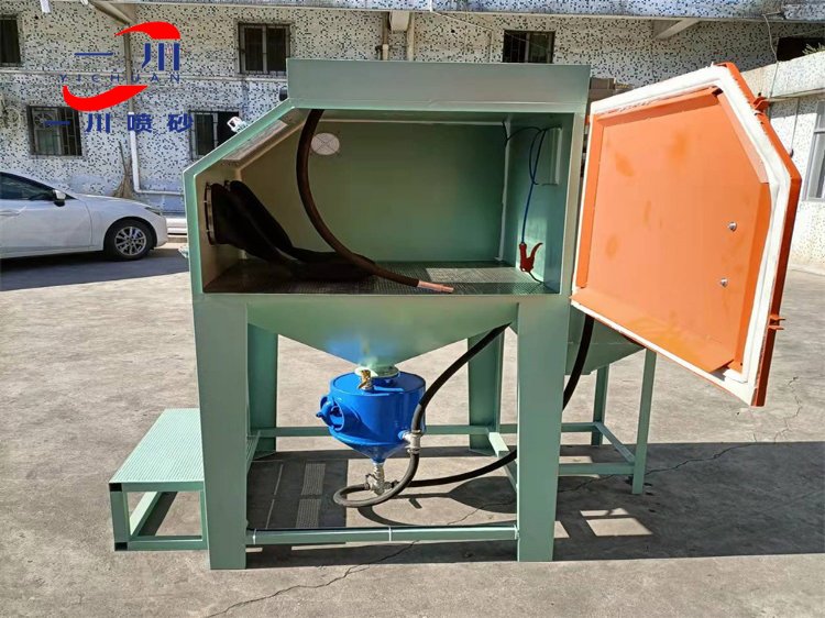 喷嘴高速射到工件表面,达到喷砂加工的目的。在工作状态时,压缩空气和砂料边混合边喷射,使压缩空气得到充分利用,空气的流量和砂料的流量便于调节,能得到理想的混合比,能源和砂料消耗少,研扫。喷射到工件表面的砂料在工件表面进行冲击研磨,把工件表面的杂质及氧化皮清除掉,使表面积增大,提高涂层的附着力,提高涂装质量。可以分散结构体内在残余应力,达到硬化工件表面,增加零件表面对塑型变形和断裂的抵抗能力,并使工件表层产生压应力,提高其疲劳强度。使工件表面缺陷和机械加工损伤减少,降低应力集中。适用于喷砂效果强烈及高硬度工件的喷砂处理