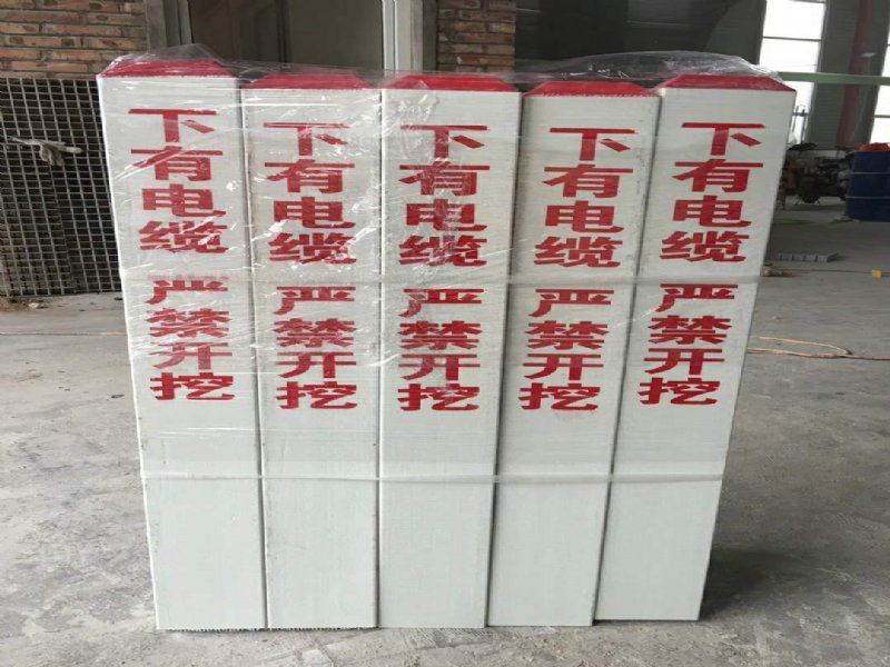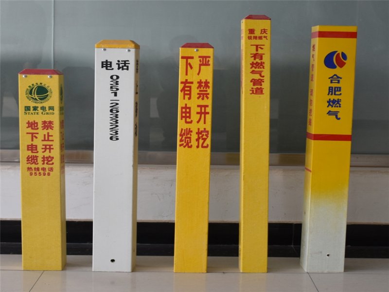 有良好的耐腐蚀性能,可以抵抗水,汽油, 酒精,电解盐,醋酸,盐酸,钠钾化合物,尿, 沥青,适合各种酸碱土壤,防雨产品本身具有良好的抗老化性能,抗冲击力强,撞击不变形,有很高的拉伸强度,弯曲强度和冲击韧性,, 完全可以满足户外使用安全。质量轻,适于搬运,安装简单防偷盗,该材料无回收价值,自然防盗.可以有效解决地下重要设施被挖断的问题,具有重大的社会效益和经济效益.完全符合要求的环保材料,满足未来发展需要。在桩体表面印有明显夜光效果的安全警示标识;补足了水泥标志桩的不足!桩体表面使用特制特种
