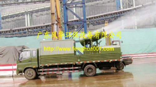对容易引起尘埃的堆场喷水除尘时,喷出的雾粒细小、与飘起的尘埃接触时,形成一种潮湿雾状体,能快速将尘埃抑制降沉;