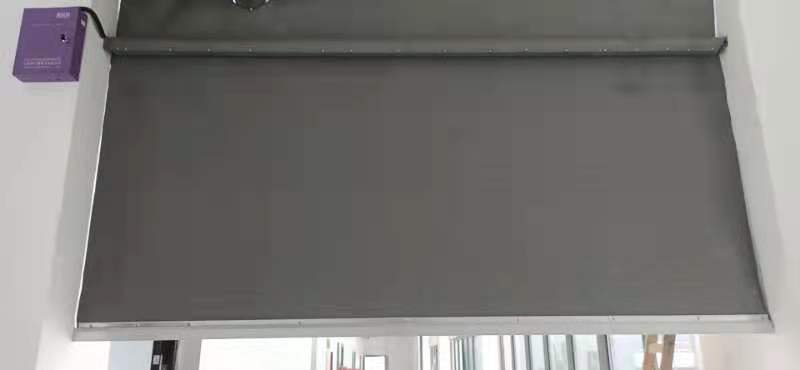 4、电动柔性挡烟垂壁有手动操作按钮控制盒和消防控制中心联动发出信号。当控制中心发出火警信号或“烟感”信号后,挡烟垂壁迅速下落至设定高度。