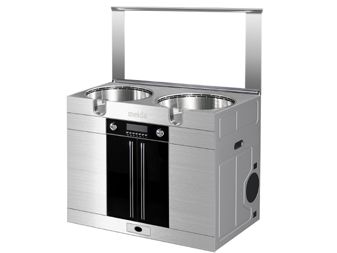 烤箱、消毒烘干、贮藏功能和人性化智能控制于一体,应用微空气动力学设计原理和独创全新概念的下排风工作方式,采用高速空气流体隔膜和深井侧吸等专利技术,提高吸油烟率,解决了长期悬而未决的厨房油烟污染和厨房