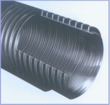 聚乙烯管壁外表面有等间距螺旋环绕的肋片加强。肋片是有普通碳素结构