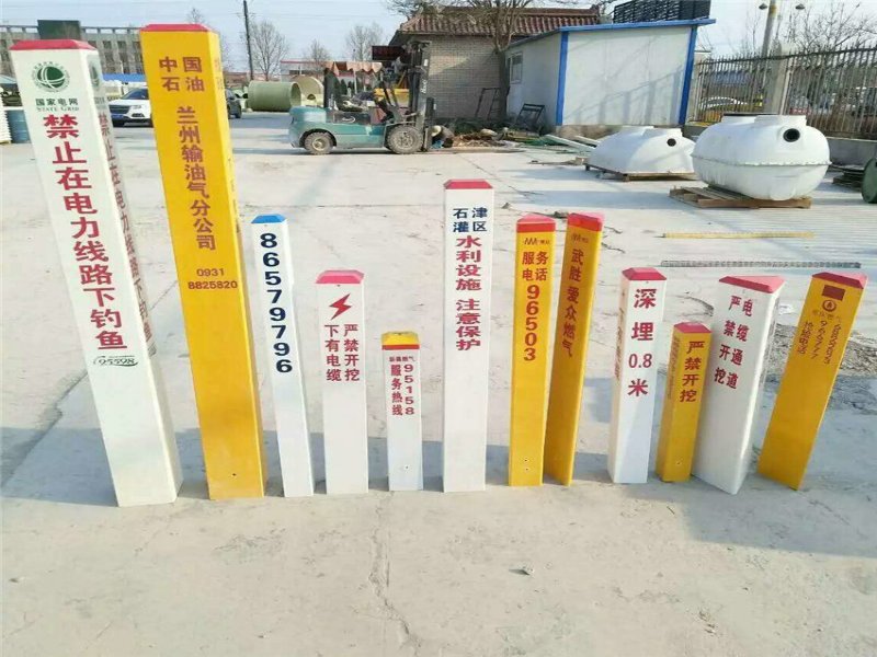 线路玻璃钢警示桩冲击力强,碰击不变形,有很高的拉伸强度,曲折强度和冲击韧性,完全可以满足野外运用安全,具有超卓的抗冲击性 质量轻,适于搬运,设备简略防偷盗,该资料无回收价值,天然防盗.可以有用处理地下首要设备被挖断的疑问,具有严峻的社会效益和经济效益。