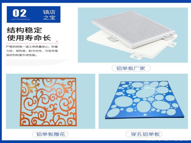 铝单板基材采用1100、1060、3003、3004、5052单层铝合铝合金材质。