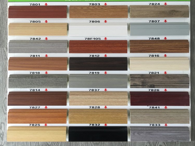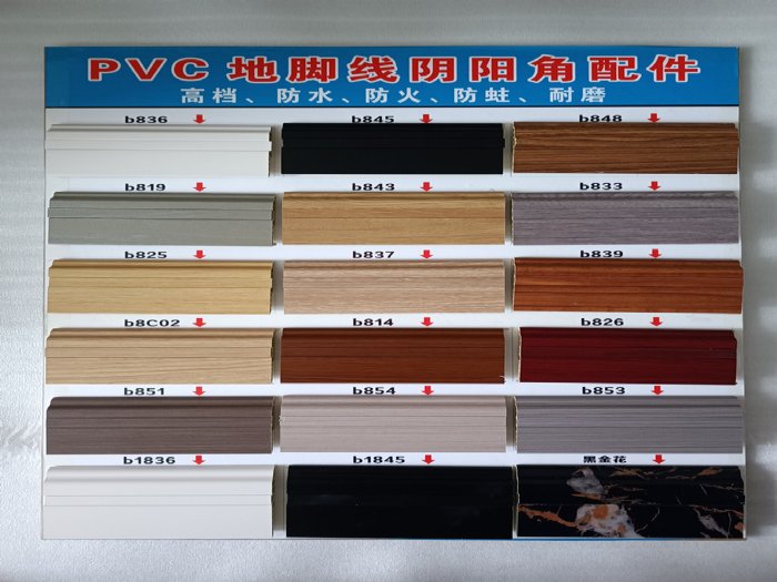 8分黑白色PVC地脚线 木纹防水塑料踢脚板隐钉墙角线佛山批发