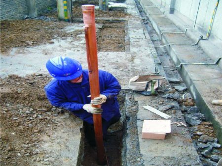 紫铜合金制成,并经过特殊的陶瓷度膜防腐工艺处理,以确保高导电性能及延长使用寿命;系统内部及外部配装两种富离子填充材料,外部填充材料具有强吸水力,强吸附力和阳离子交换性能高的材料为主体,配以长效、降阻、防腐功能强、膨胀系数高不受温度变化影响、耐高电压冲击的多种化学材料为辅料;内部填充材料含有特制的电离子化合物,能充分吸收土壤中的水分,通过潮解作用,将活性电离子有效释放到土壤中,促进导体外部缓释降阻,且保持阻值长期稳定。接地寿命长达 50 年。突破土壤的限制实验证明,土壤电阻率过高的直接原因是因为乏自由离子的辅助导电作用。电解离子接地系统在接地体内部加入可逆性缓释填充剂,这种填充剂具有吸水、放水可逆的特点。通过这种方式产生的离子,可以有效释放到周围的土壤中,使