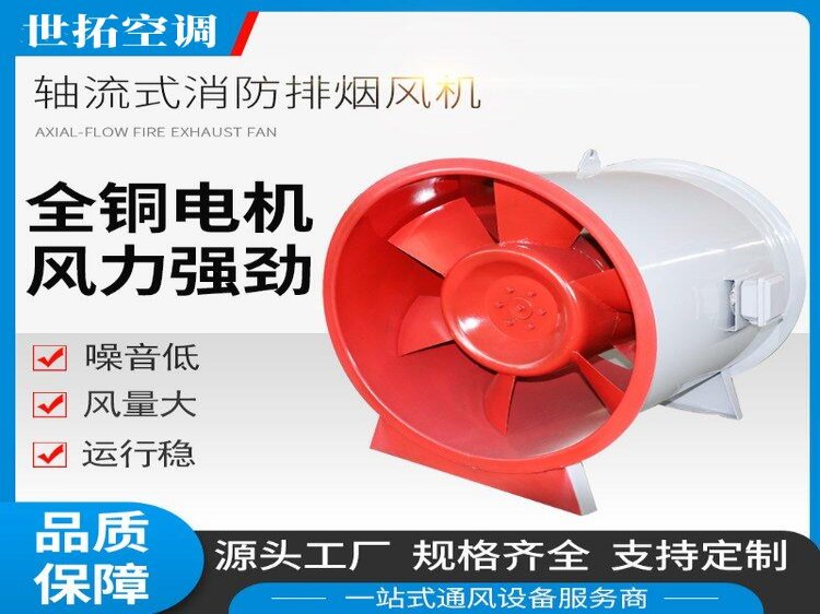 排烟风机适用于高层建筑、地下建筑及隧道、烘房等通风换气或高温排烟。能在280℃高温条件下连续运转30分钟以上,介质温度100℃条件下连续运行20小时/次不损坏,是理想的消防必备设施。