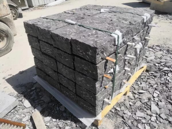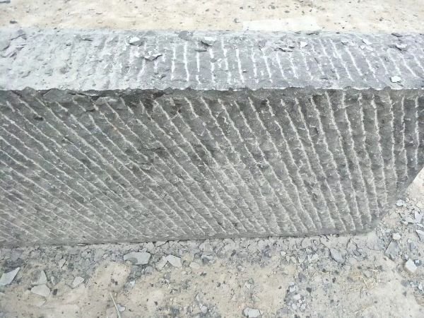 青石台阶石的加工方式有很多,按昭古建营造法式上来说,经常采用青石剁斧加工,就是古建上常说的青白石三遍剁斧,古代都是人工用斧子加工,一点点的剁,一遍一遍的加工,确实慢,但是人工剁斧出来的效果好,剁斧深不交错,现在的青石剁斧都是气动斧子来加工了,没有原来的深度,现在剁斧面比原来更加密了,这也是新设备的好处所在。青石台阶剁斧面的加工一定要有好的师傅,没干过5年以上的斧子可把不好,那样剁斧面就会显的乱,没有章法了。当然青石台阶也可以机切面,这是简单的一种方法,大锯切割出来就可以,这种成本低好加工,出活快,注意的是一定要注意尺寸。