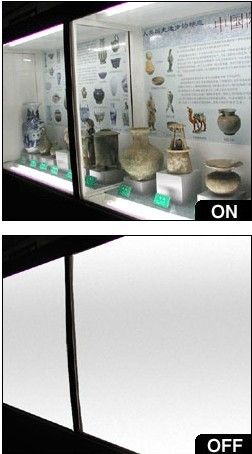 通电透明,断电乳白。可取代窗帘,起到屏蔽与隔断功能,坚实安全。随意切换透明与不透明之间【遥控控制】。更好的结合开放空间与隐蔽空间为一体。在注重隐私保护和个人情趣的卫浴隔断领域,调光玻璃无疑是新兴的市场宠儿,广受注重生活品位的中高阶层欢迎;调光玻璃也渐渐得以脱离小众应用范围,步入更广阔的应用舞台。