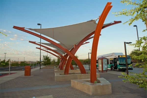 ”都由某种形式的压缩或弯曲元件、压缩环或钢梁支撑。由于“张拉膜结构”能够跨越大面积,它们通常被用作屋顶。用于制造这些“