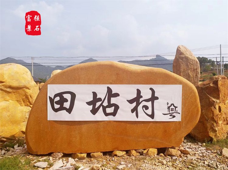 假山造景驳岸是黄蜡石 刻字景观石 黄水石