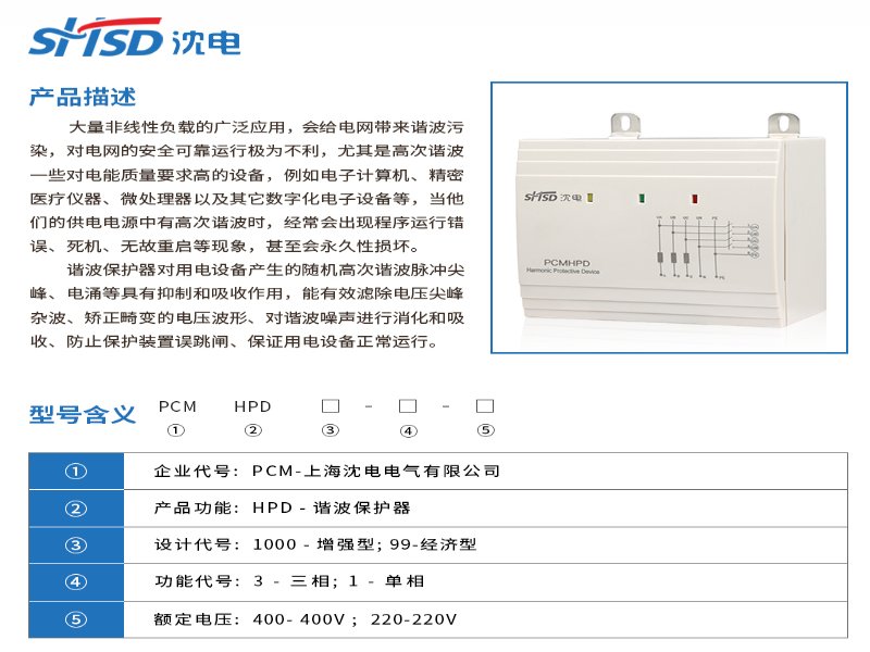 ▲ 谐波保护器对用电设备产生的随机高次谐波、脉冲尖峰、电涌等具有抑制和吸收作用,能有效滤除电压尖峰杂波、矫正畸变的电压波形、对谐波噪声进行消化和吸收、防止保护装置误跳闸、保证用电设备正常运行。