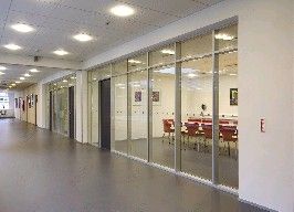 这种简单但十分可靠的构造,能确保这个隔断墙系列是非常灵活,易于装配、拆卸并可以重新安装在新的使用场合。如各种模块在位置上的互换,门框模块和各种模块之间的互换等。