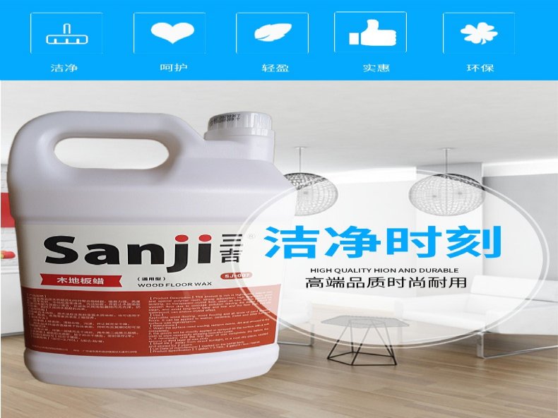 木地板翻新上光保养蜡木质家具养护增亮打蜡水富含高品质进口蜡质和特种聚合物树脂,无需起蜡,亮度高,渗透性好,令地板晶莹通透、光洁如新。并防止木质地板因渗污而使污渍难以清洁,并避免长期地板磨损而无光泽,能持久保持水晶般的效果。
