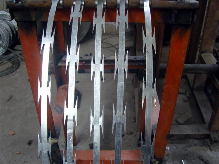 工艺:采用钢板(刀板)冲压成型包附于热镀锌钢丝(芯线)之上,由锐利尖角