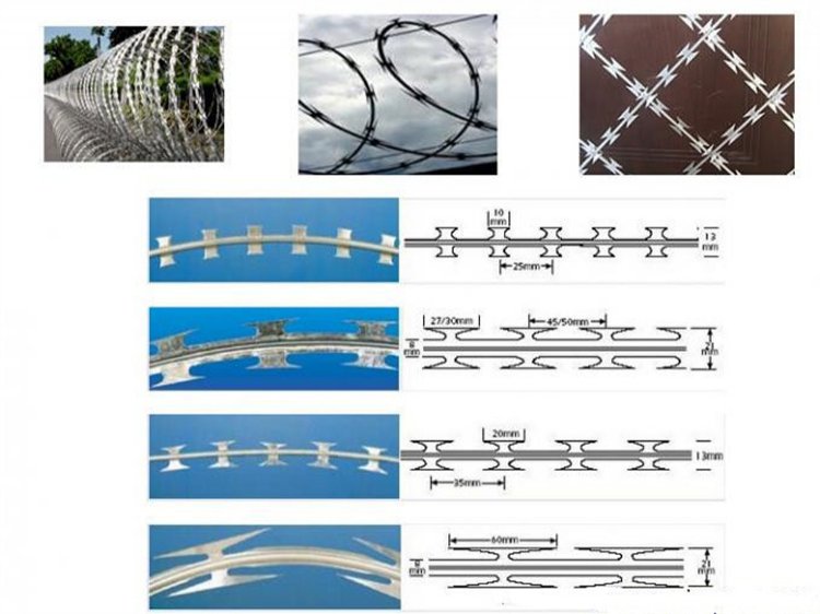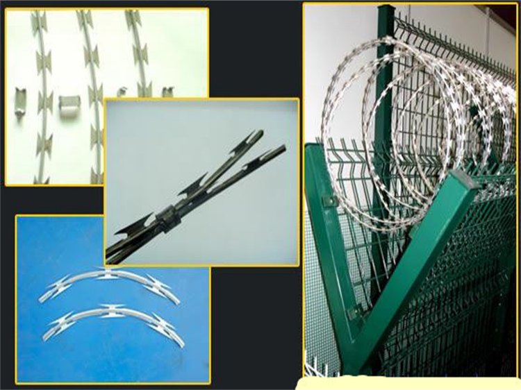 连接件和刀片刺网组成,既安全环保又经久耐用。刀片刺网是一种新型防护网,由锐利尖角镀锌