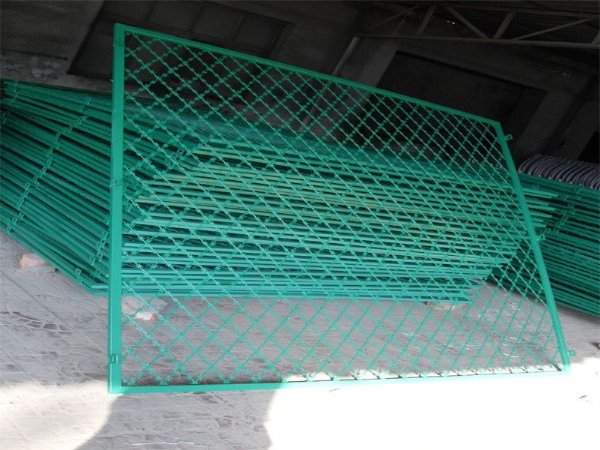 低碳钢丝焊接而成的网片、立柱、刺铁丝(可选)、斜撑(可选)连接而成。