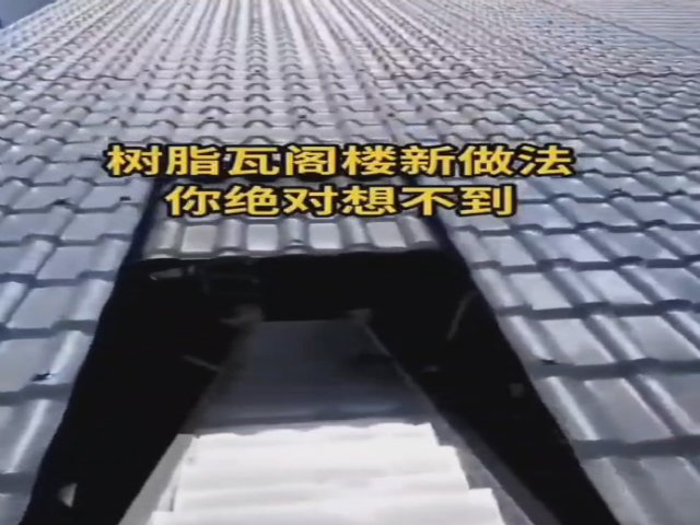 树脂瓦屋顶这样安装解决了高楼住户不方便上到瓦面的问题,从外面搭梯子上瓦面是非常危险的,如果是高楼的话,也找不到那么合适的楼梯。这样安装树脂瓦留了一块可以推拉开,直接从楼顶上瓦面,安全又方便。不得不说这位安装师傅非常有才。
