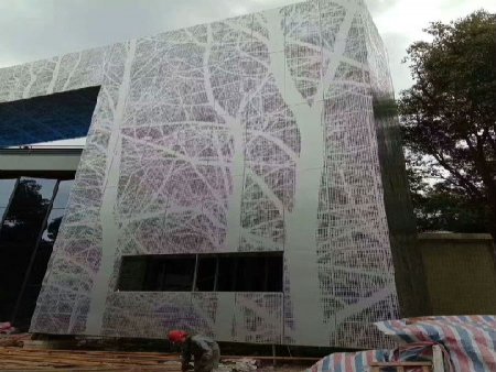 镂空铝单板可加工成平面、弧型和球面等各种复杂几何形状。而白云也沾染了霞光,铝单板