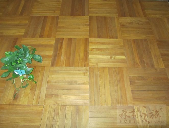 拼花地板,采用名贵的缅甸柚木制造,按照方块型的方式拼装。并可根据您的特殊需求定制各种花型!