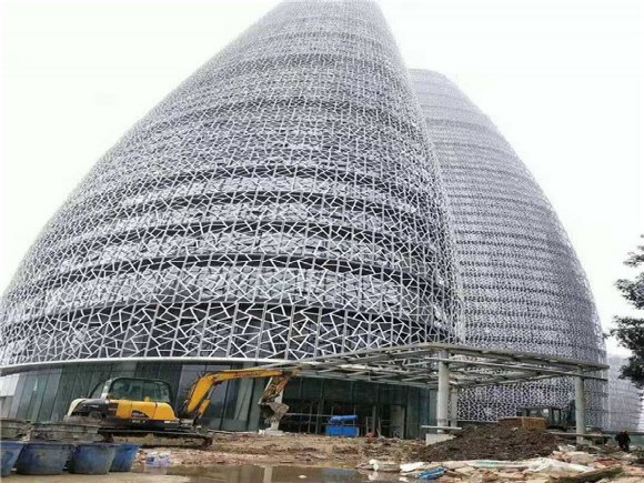 冲孔铝单板(穿孔铝单板)利用不同图案,大小疏密的孔型变化搭配使物面产生动感,结合不同外形环境进行异形处理,冲孔铝单板(穿孔铝单板)造型独特美观大方,另线条更为明快,飘逸,突破传统造型概念,更适合各种现代高级会所。