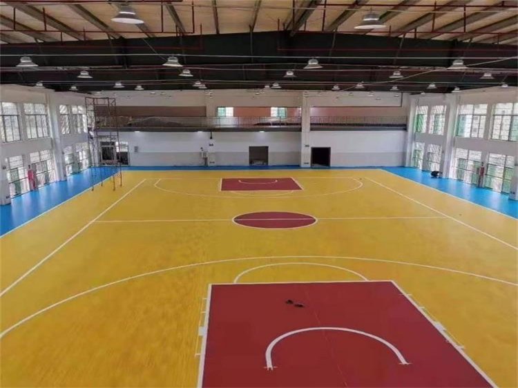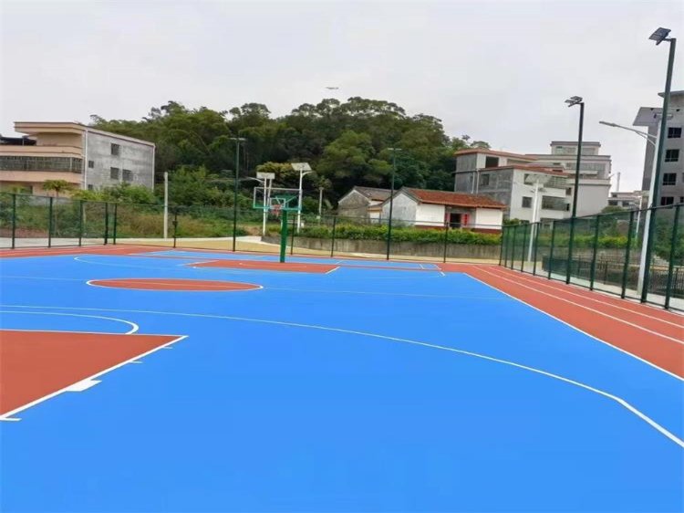 5、加强层:用丙烯酸填充剂全场涂刮一层以丙烯酸填充剂兑水掺60-80目石英砂。充分搅拌后用进口橡胶刮耙刮涂。在底层之上再提供一层均匀浓密的垫层,增加球场强度,提高整个地坪面层的品质。干透约需24小时。