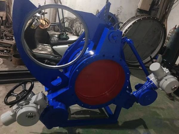 电动推杆Ⅱ动作,密封副脱开,然后电动推杆Ⅰ动作,扇形阀板由开到关,关到位后,电动推杆Ⅱ再反方向动作,密封副夹紧,关阀结束。开阀则反之。