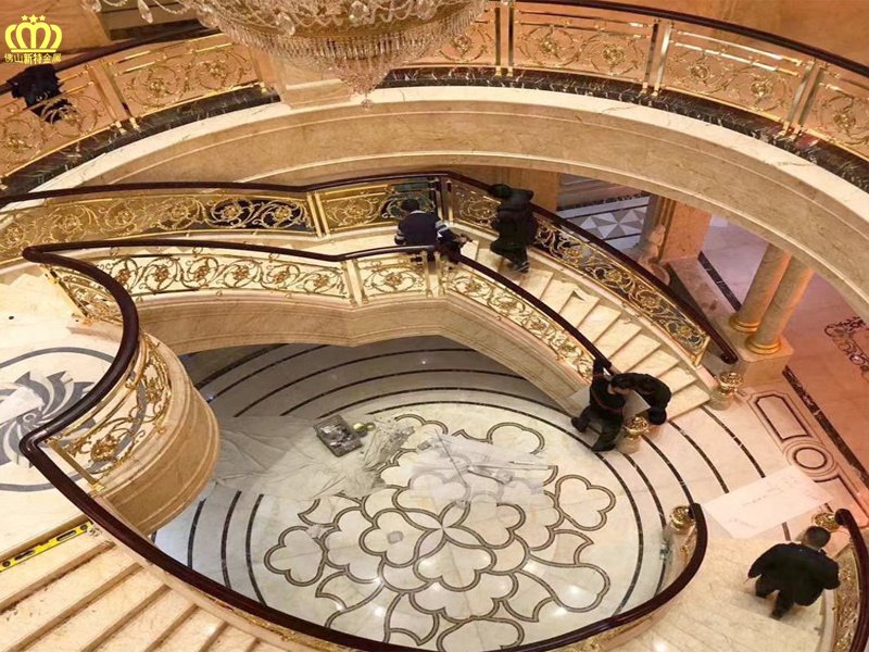 新型铜楼梯铜雕花护栏,在设计中把人的思想、情感与向往,融合进环境中,通过“意境”将其立体,空间地再现于现实中,使人入境,让